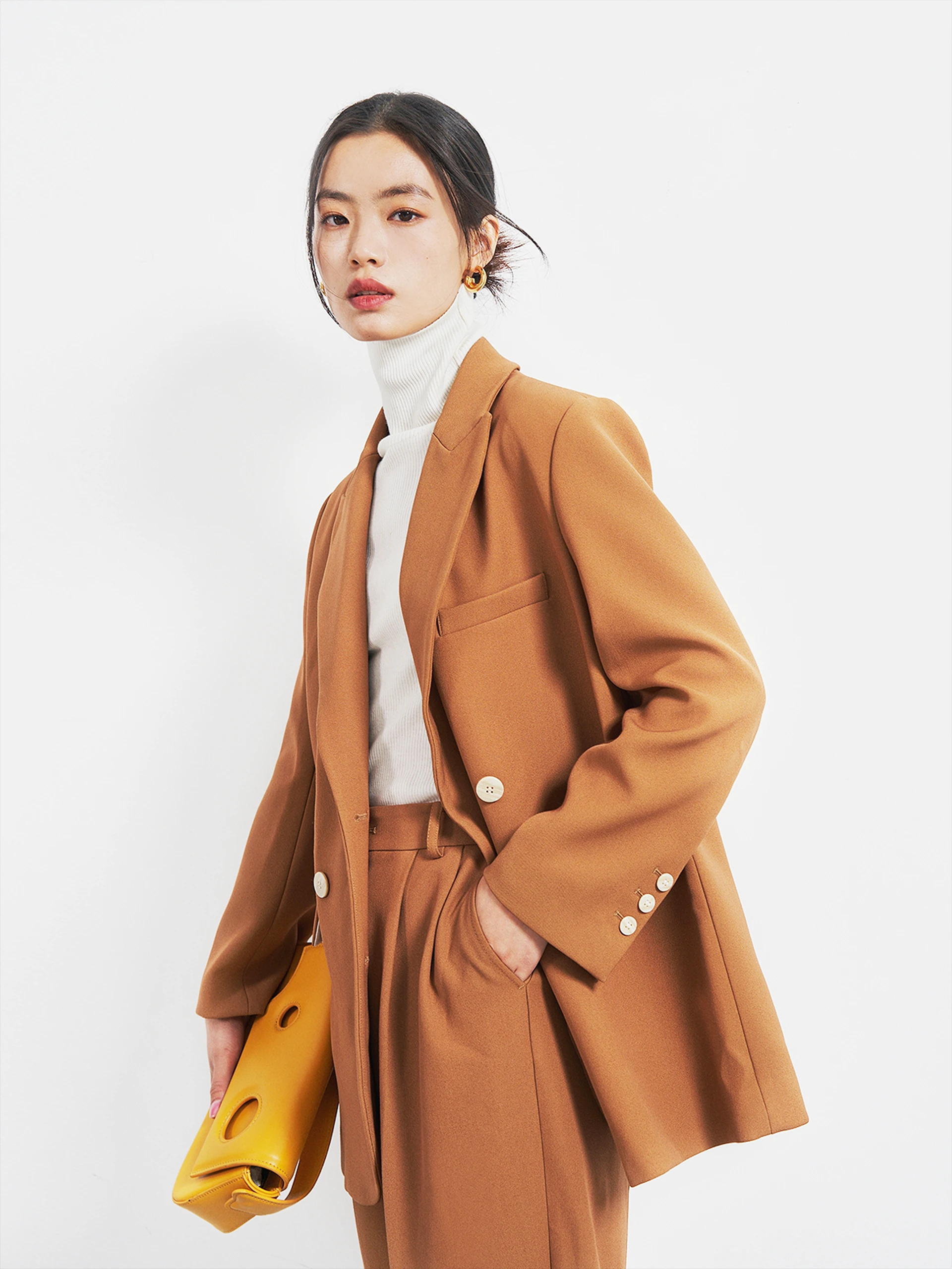The Café Chic Relaxed Suit Set redefines casual elegance with its warm light brown tone and relaxed silhouette. Designed with a two-button blazer and wide-leg palazzo pants, it delivers both structure and ease. The breathable woven fabric and soft drape make it ideal for transitional dressing — from casual Fridays and creative meetings to weekend café strolls. Timeless, understated, and incredibly versatile, this set is your go-to for elevated comfort.