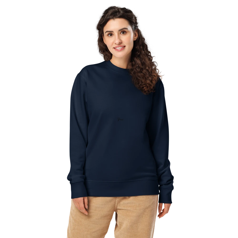 Snuggle up in this eco-friendly sweatshirt, made from organic cotton and recycled polyester. Its cozy brushed fleece on the inside keeps you comfy while the half-moon detail on the back gives a polished look.